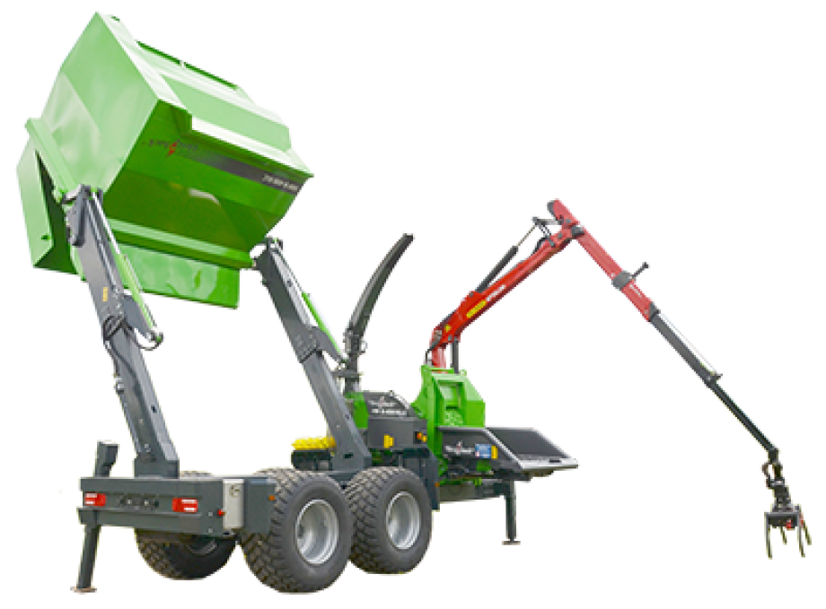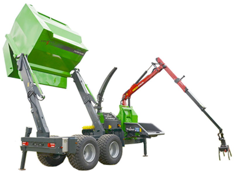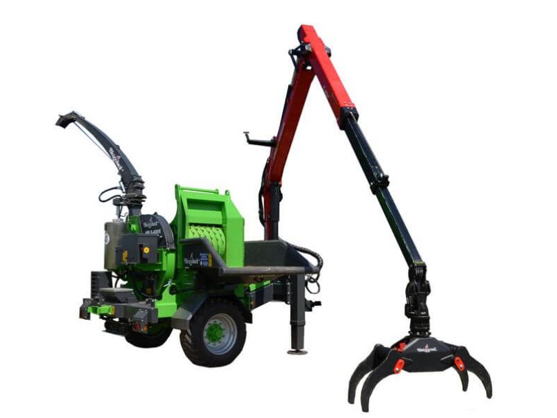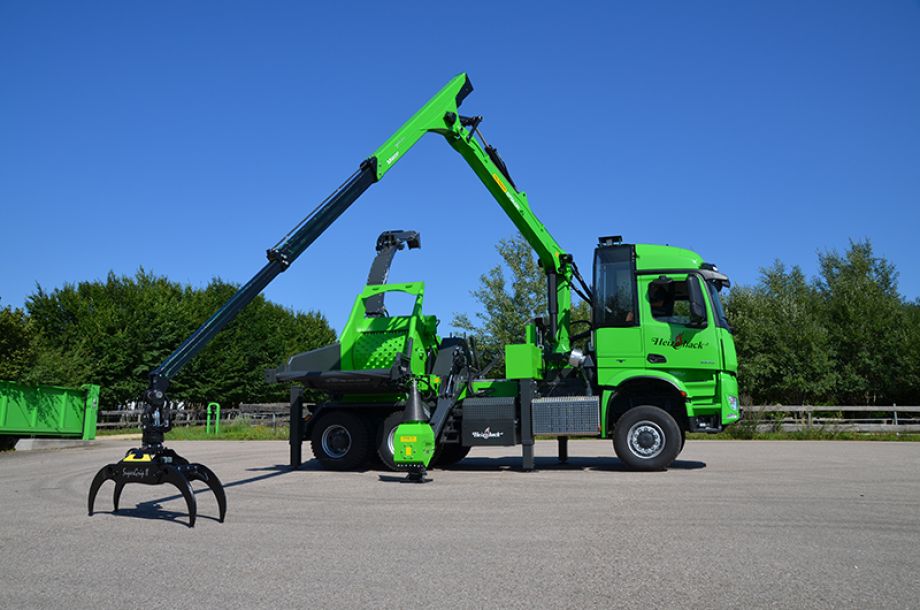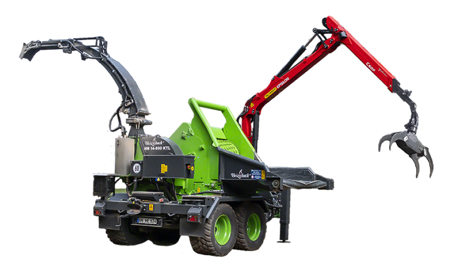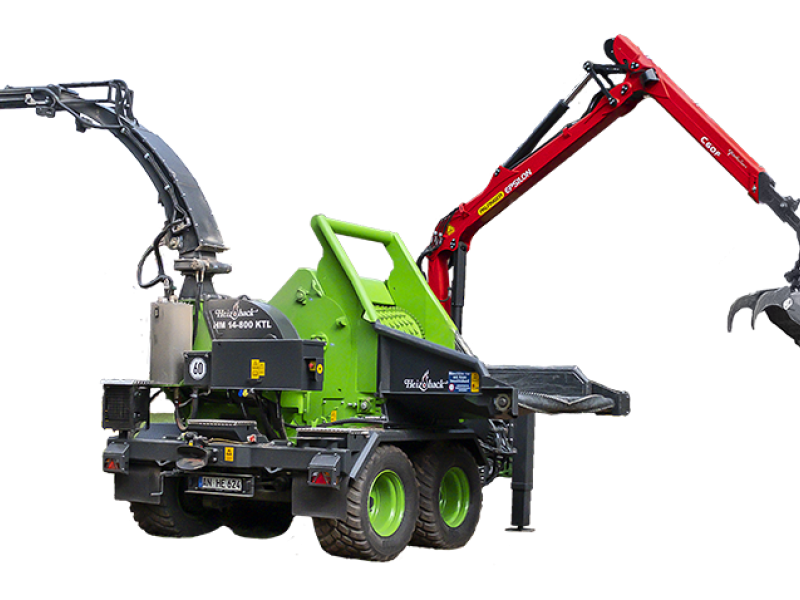 Kranbeschickte HEIZOHACK – Holzhackmaschinen sind leistungsstarke Profimaschinen für Lohnunternehmen oder Genossenschaften.