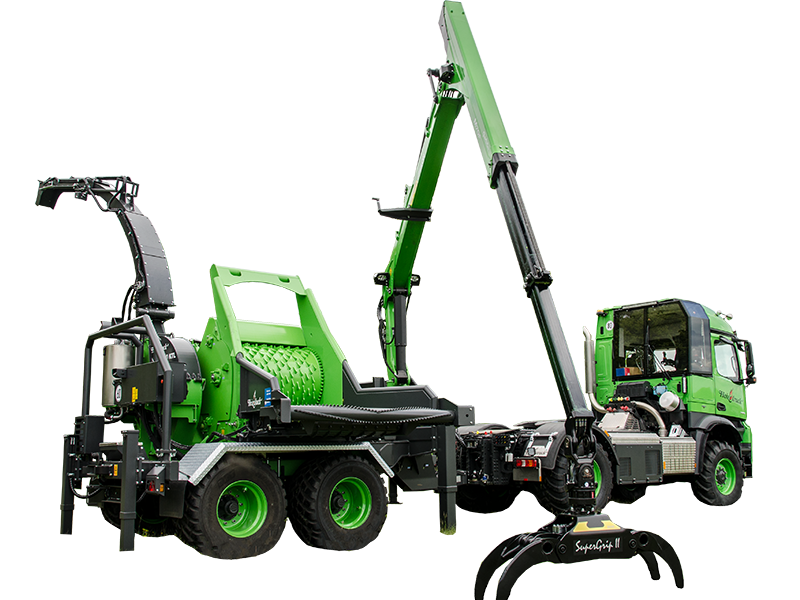 Ideal für die Aufbereitung von Schwachholz, Gipfelmaterial und Baumkronenmaterial, Holzabfällen, aber auch für Stämme bis 40 cm Durchmesser.